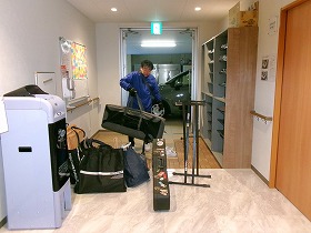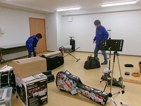 早速、みんな会場前まで降りてもらい、機材搬入して、車もありがたくその場所に駐車させていただきまし