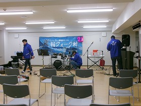 この会場でのイベントは、何度も(3回も)演奏させていただいているので、会場前までみんな集まるだろうな