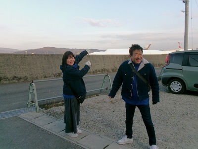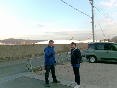 そして、撤収完了後に、施設の入口までご挨拶に来てくださった大下さんと一緒に、一本締めをさせていた