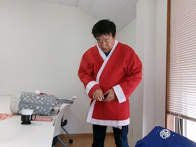 一服しながらサンタクロース衣装準備