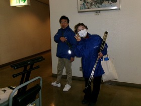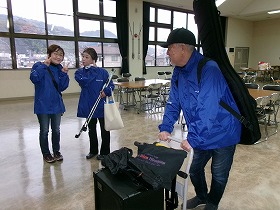 サロン世話人の方々のサポートをうけながら、会場の機材等の撤収をすませ、車へ運ぶ前に、ステージに