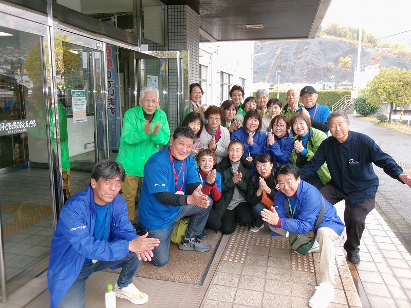 飾ってくださってた「呉フォーク村 祝20周年記念」横断幕の前で、参加メンバーの集合写真を撮らせてい