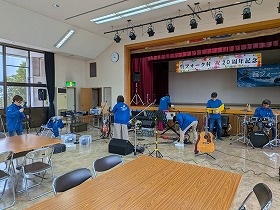 週間天気予報では、今日は雨の予定でしたが、なんと朝の機材搬入からライブ後の機材撤収完了まで、雨